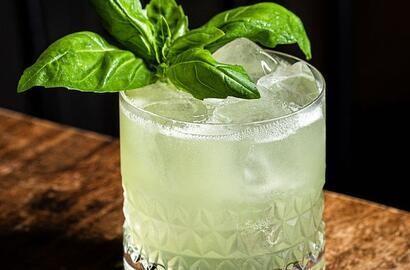 Cocktail (13,7% alc.): Gin, Citroen, Basilicum